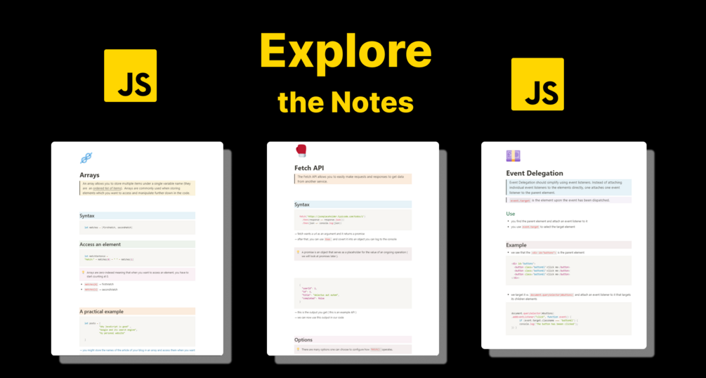 You can also find lots of information on codingnotes.io. The JavaScript section is simply a part of a massive collection of notes and flashcards for various programming languages and technologies. You can find this section here at https://www.codingnotes.io/javascript✨