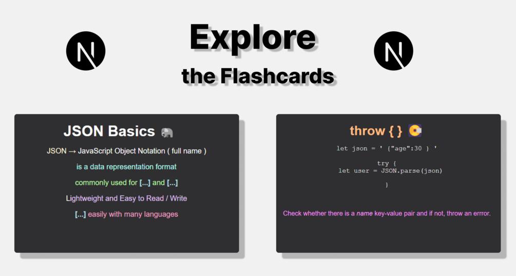 This bundle provides you with over 30+ pages and 100+ flashcards on every major concept of NextJS.