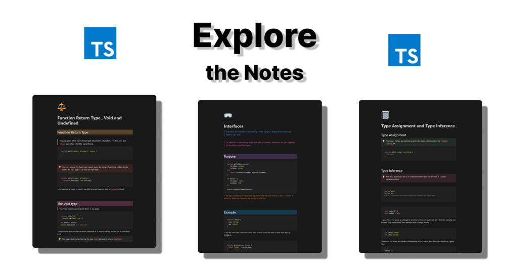 This bundle provides you with over 35 pages and 100+ flashcards on every major concept of TypeScript.